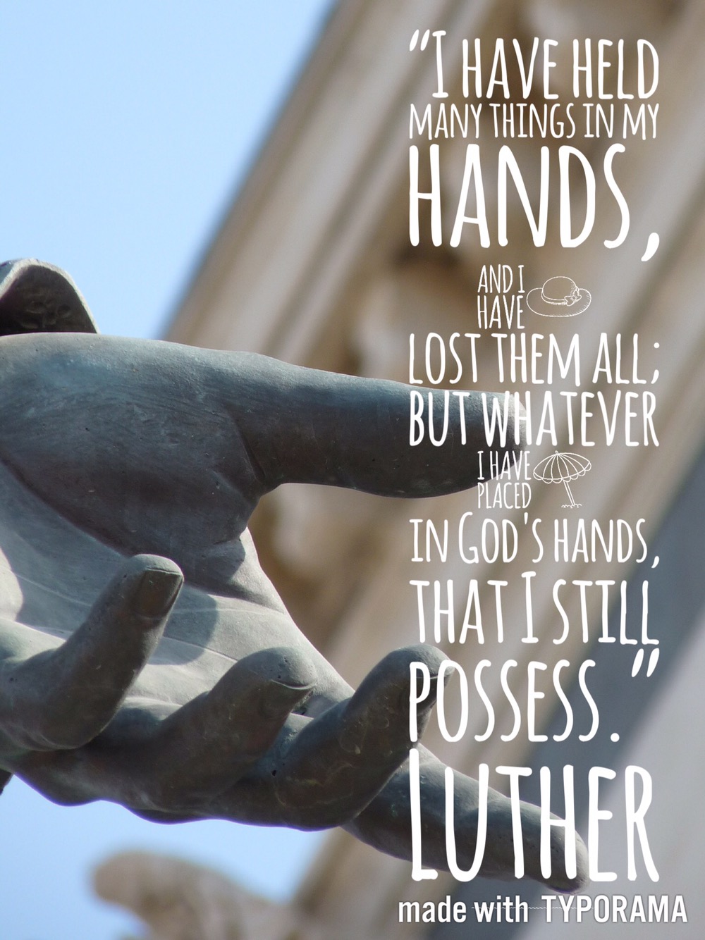 FAITH Posted byJohn EstorgeMarch 25, 2017Posted inUncategorized “I have held many things in my hands, and I have lost them all; but whatever I have placed in God’s hands, that I still possess.” – Martin Luther Share this: Click to share on Facebook (Opens in new window) Facebook Click to share on X (Opens in new window) X Click to email a link to a friend (Opens in new window) Email Click to print (Opens in new window) Print Click to share on Reddit (Opens in new window) Reddit Like Loading... Related Published by John Estorge JOHN ESTORGE View more posts