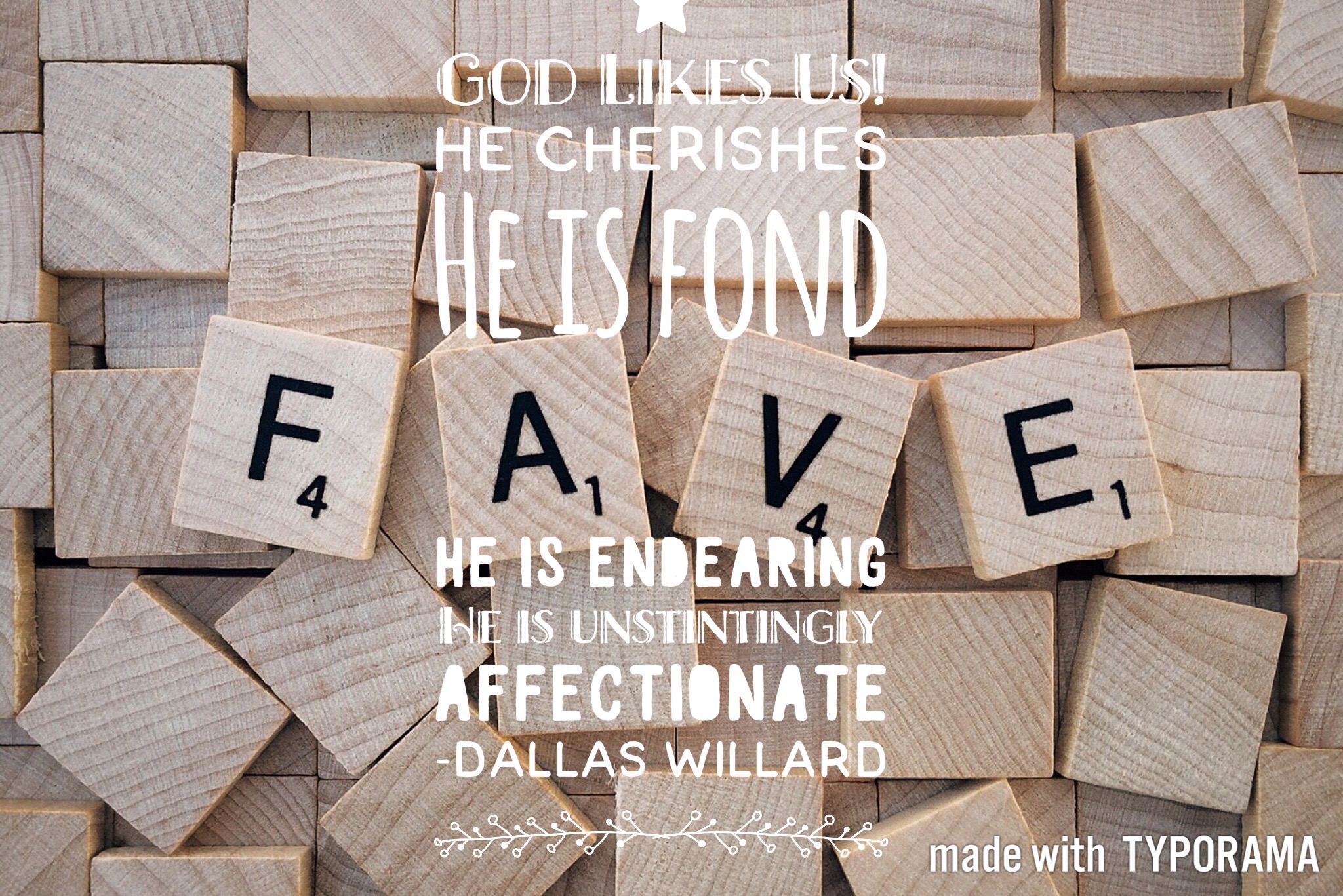 We must understand that God does not “love” us without liking us – through gritted teeth – as “Christian” love is sometimes thought to do. Rather, out of the eternal freshness of his perpetually self-renewed being, the heavenly Father cherishes the earth and each human being upon it. The fondness, the endearment, the unstintingly affectionate regard of God toward all his creatures is the natural outflow of what he is to the core – which we vainly try to capture with our tired but indispensable old word “love”. -Dallas Willard